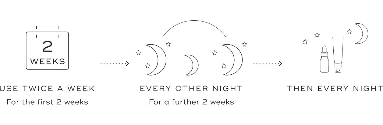 This helps to train the skin and allow to build Vitamin A reliance, minimising irritation levels.